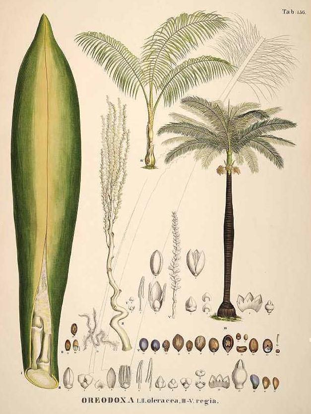 ArecaceaeNativa del Caribe y Centroamérica, presente también en Florida, es una palmera de múltiples usos: desde material de construcción para los "bohíos" o casas campesinas, hasta la cestería y elaboración de escobones, pasando por sus frutos para alimento del ganado. Hoy se cultiva como planta ornamental por todo el mundo por su elegancia y fácil cultivo.