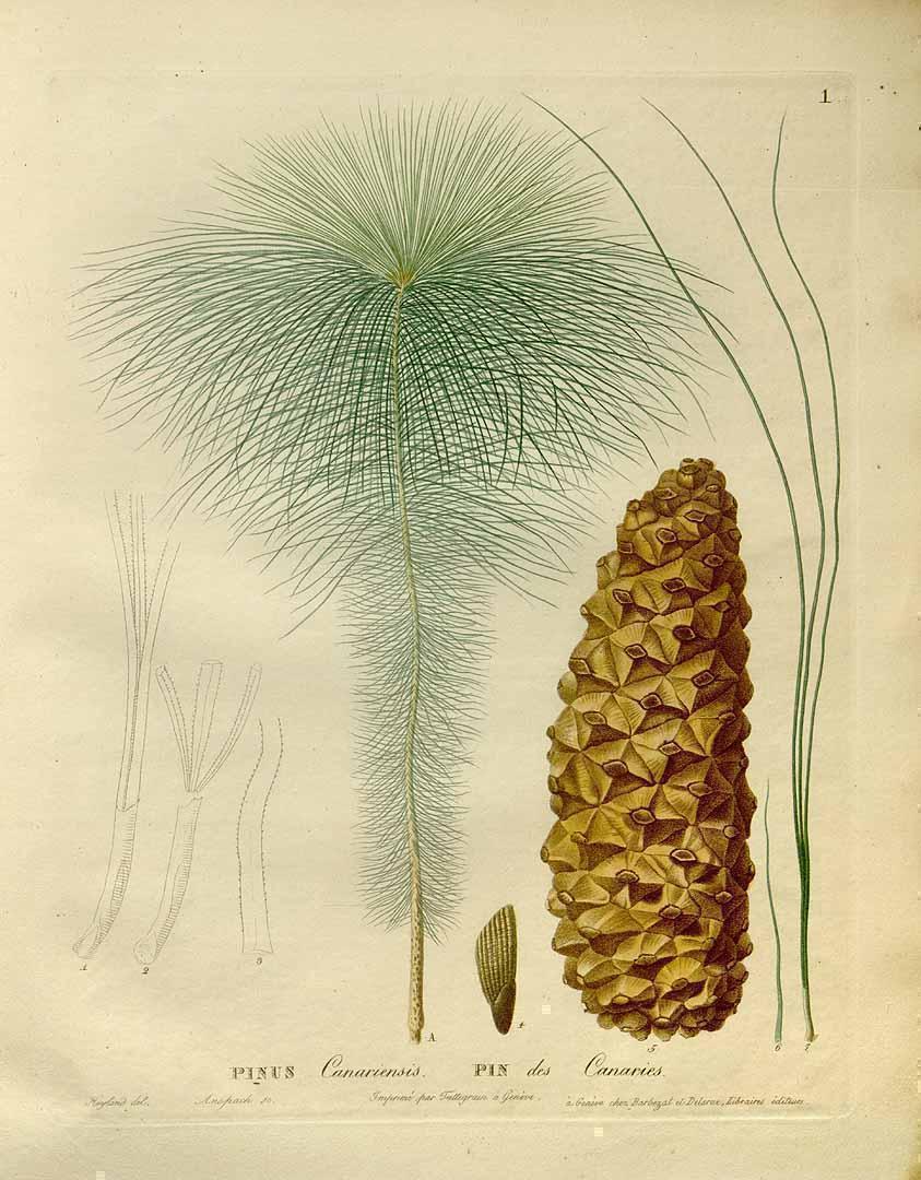 La distribución natural de los pinos canarios en la isla se halla generalmente en piso bioclimático superior. El Guiniguada, al vincular las cumbres con el mar, también arrastra su memoria. En el tramo bajo donde nos encontramos pueden apreciarse diversos ejemplares, especialmente a la altura del viaducto y al final de la colada volcánica del Maipez, donde se sitúan los últimos bloques erráticos. En este caso, se localizan sembrados linealmente en la pista ascendente.