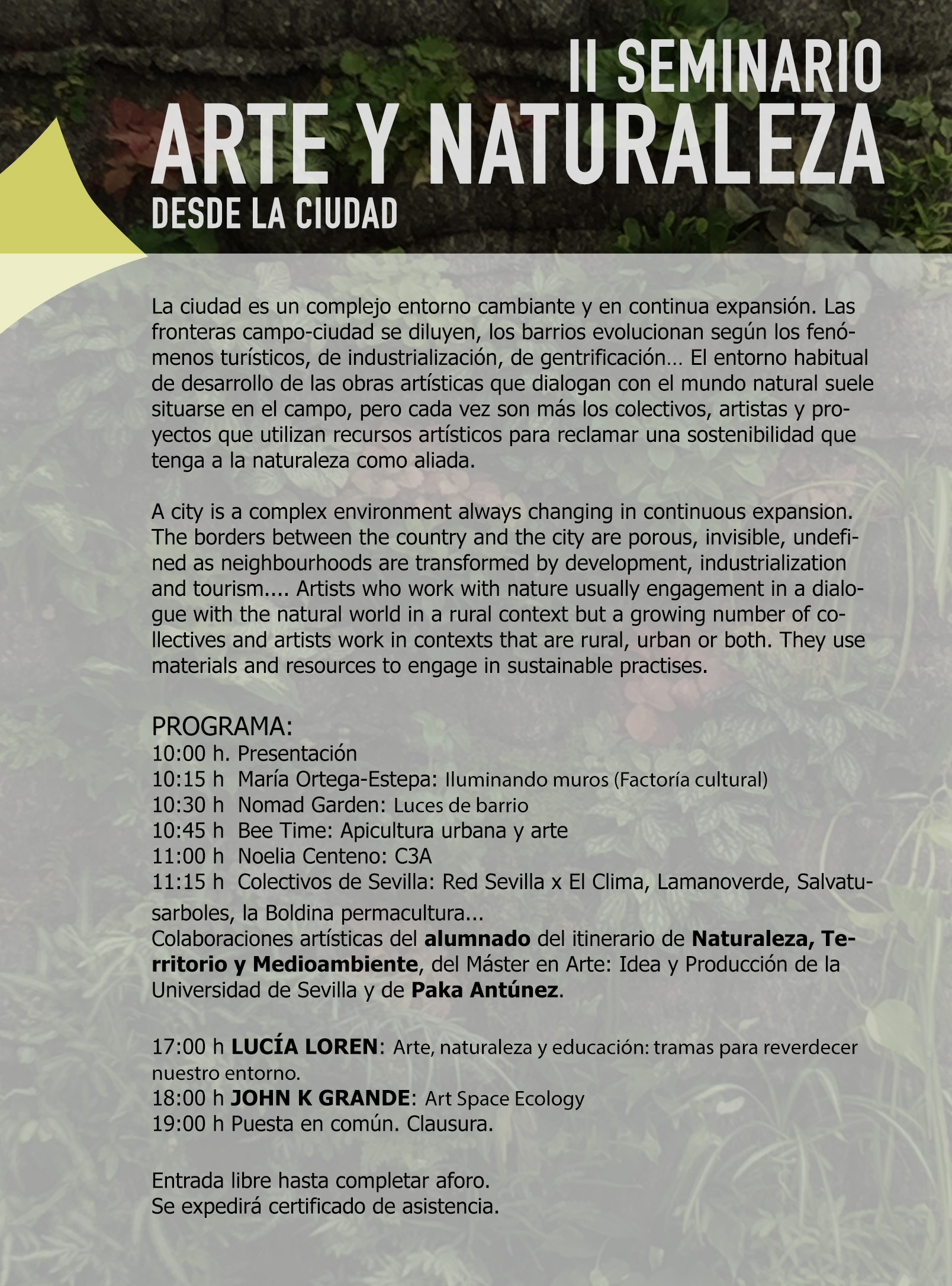 LUCES DE BARRIO PARTICIPA EN EL SEMINARIO "ARTE Y NATURALEZA DESDE LA CIUDAD"