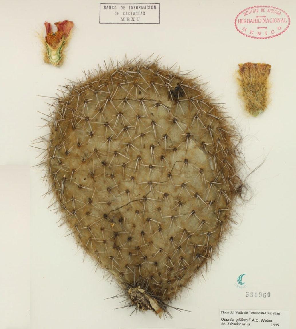 CactaceaeEspecie de nopal o chumbera endémica de los estados mexicanos de Oaxaca, Puebla y Tlaxcala. El género Opuntia engloba unas 300 especies de cactus americanos, y el nombre genérico refiere a la ciudad de Opunte, capital de Lócride, en la Grecia clásica. El epíteto específico alude a sus tunas con apariencia de ser velludas, 'llena de pelos'.