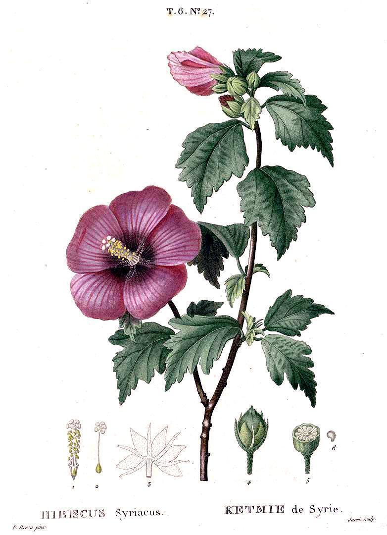 Como hibisco es nombrado por Dioscórides, en su Materia medica, en realidad refiriéndose a la altea. El tratado de este botánico y médico griego del siglo I d.C. llegó al mundo musulmán a través del Imperio Bizantino, con capital en Constantinopla. Fue traducido al árabe en Bagdad en el siglo IX durante el califato abasí por el griego Esteban, aunque de manera no muy satisfactoria. En el año 929 Abd al Rahman III, de la dinastía siria de los omeyas, se autoproclamó califa, jefe de los creyentes, en Córdoba, ciudad que ya se había transformado en uno de los centros de saber de la Edad Media. Es, en esa época, cuando llega a al-Andalus un primer tratado de Dioscórides en griego, regalo del emperador de Constantinopla al califa de Córdoba en reconocimiento de la importancia de su reino. Al poco tiempo llegará a Córdoba un monje llamado Nicolás, también enviado directamente desde Bizancio por el emperador a petición de Abd al Rahman III, con el fin de traducir la Materia Médica. Así se obtuvo un mejor conocimiento botánico y medicinal de las propiedades de las plantas y se confirmaba, a su vez, el prestigio de Córdoba y al-Andalus como lugares de salvaguarda de la cultura clásica. Las flores son comestibles, y junto a las hojas se utilizan en infusiones o ensaladas.Procedencia