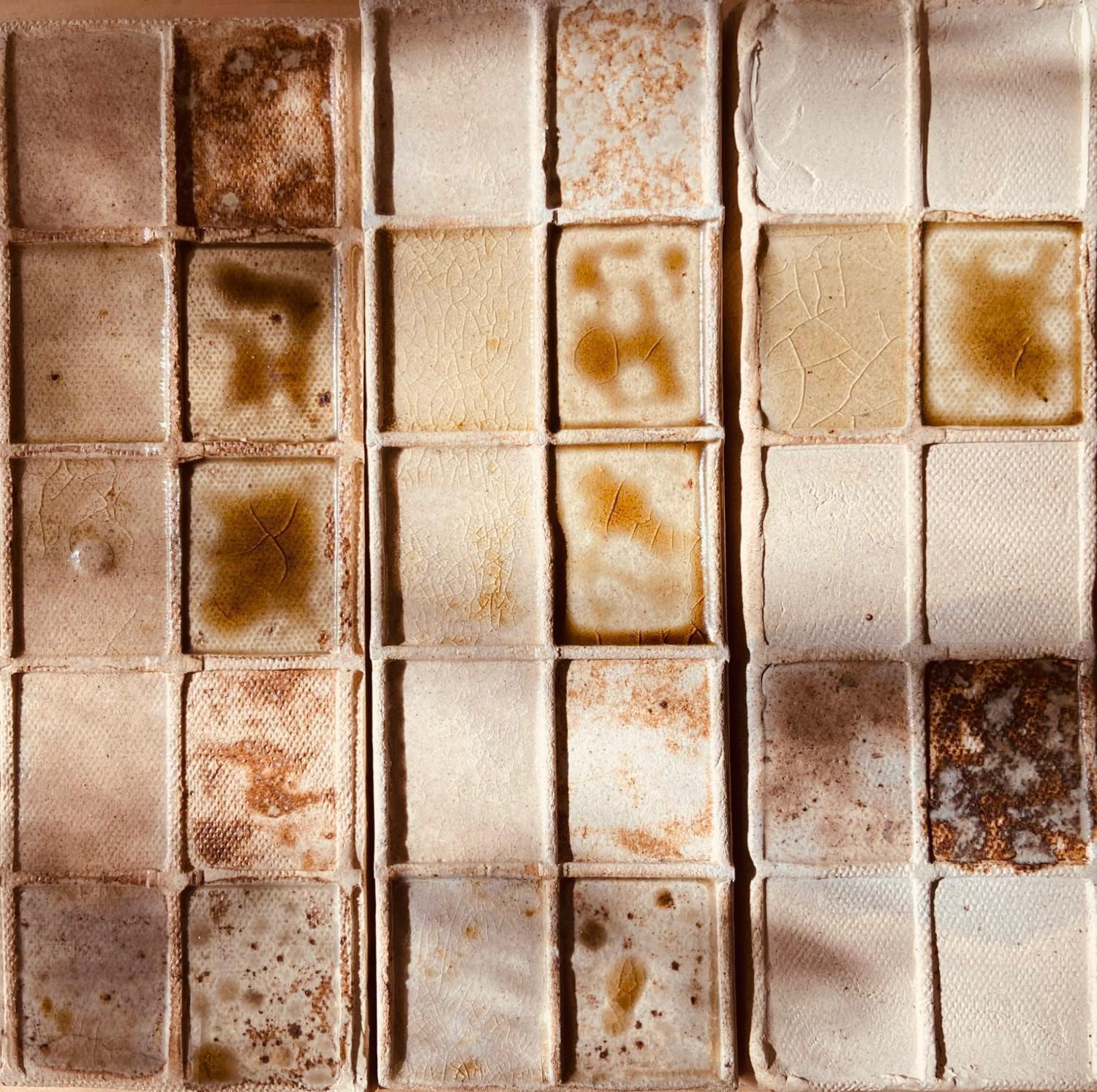 La 1ª exploración por la campiña de Jerez sirvió para recolectar los primeros sarmientos, racimos secos y albariza. que nos permitirían crear cenizas para probar los primeros esmaltes en unos muestrarios de gres traídos por Estelle Jullian desde Valencia.