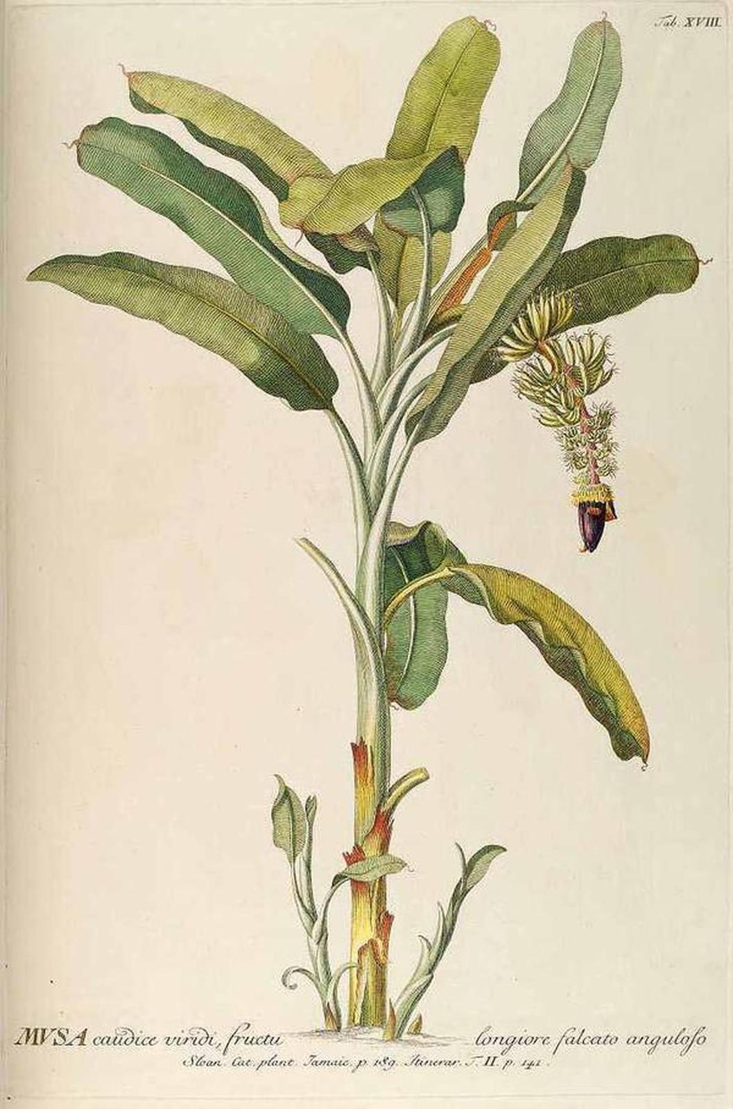 El cronista Pedro Mártir de Anglería (c.1455-1526) encontró bananeros en la América tropical, según nos cuenta en sus Décadas de Orbo Novo. Su forma de acercarse a esta planta es la típica de los cronistas de la época, intentando identificar lo nuevo con lo ya conocido o citado en las fuentes clásicas. Anglería lo llama musa y recoge de dónde toma el nombre: los extranjeros traficantes en inútiles aromas y perfumes y olores de la Arabia que afeminan, y en inútiles perlas, que fueron a aquellas tierras [Arabia] en busca de ganancias, llaman a esas frutas musas; la propia palabra banana parece por lo demás derivar del término árabe para designar a los “dedos” por la similitud del fruto con esa parte del cuerpo humano.