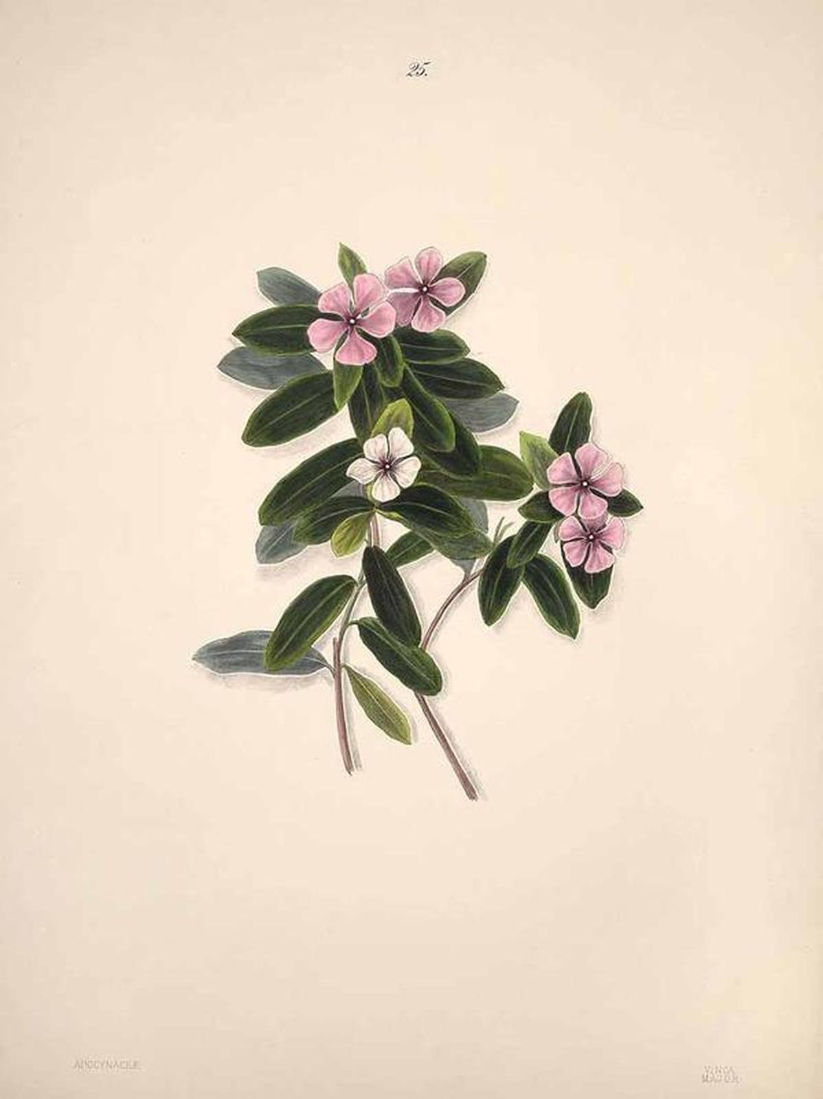 ApocynaceaeLa vinca es una planta tapizante muy decorativa, usada ampliamente en jardinería. Su nombre deriva del latín vincere, que significa vencer, aunque también atar, una alusión a la función de sus largos tallos flexibles. Quizás por ello, se difundió la idea de que era una planta mágica con la cual preparar filtros de amor. Descrita por primera vez por el francés Etienne Flacourt en 1645, gobernador de Madagascar por la Compañía Francesa de las Indias Orientales, la vincapervinca (hierba doncella) paso a la actualidad, en los años setenta, por hallarse en ella compuestos con importantes virtudes anticancerosas. El ser humano siempre ha buscado en la naturaleza lo necesario para calmar sus males y reparar sus desequilibrios. Se estima que dos de cada tres medicamentos vendidos en las farmacias son de origen natural como la morfina (amapola adormidera), la quinina (arbusto de la chinchona), la digitalina (hierba dedalera) o el ácido acetilsalicílico (sauce blanco), y en los países en desarrollo todavía el 80% de la población se trata con remedios tradicionales directamente extraídos de las plantas. En Sevilla, a lo largo de su historia, no fueron pocos los médicos y sabios, de diferentes civilizaciones, que se consagraron a esta búsqueda. Un caso llamativo fue, como ya hemos advertido, el de Nicolás de Monardes, quién transformo su jardín, donde aclimataba nuevas plantas provenientes de América, en un auténtico laboratorio donde ensayar las propiedades y efectos de las plantas sobre el cuerpo humano.