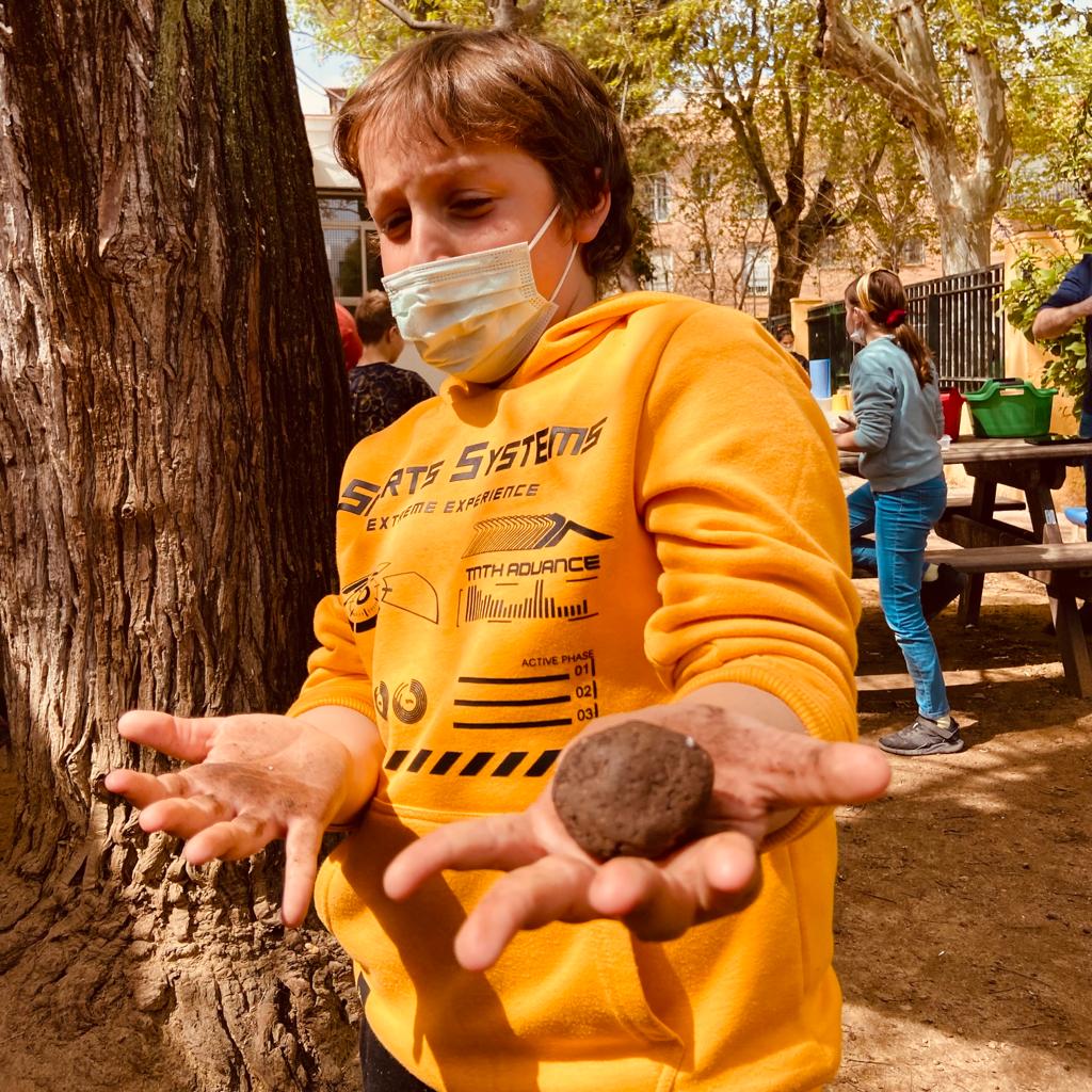NOTA: si se trabaja en el interior del aula, es recomendable cubrir las mesas con manteles de papel para no ensuciar los pupitres, y tener cerca papel para limpiar lo que se ensucie y las manos cuando hayamos terminado de modelar las bolas.